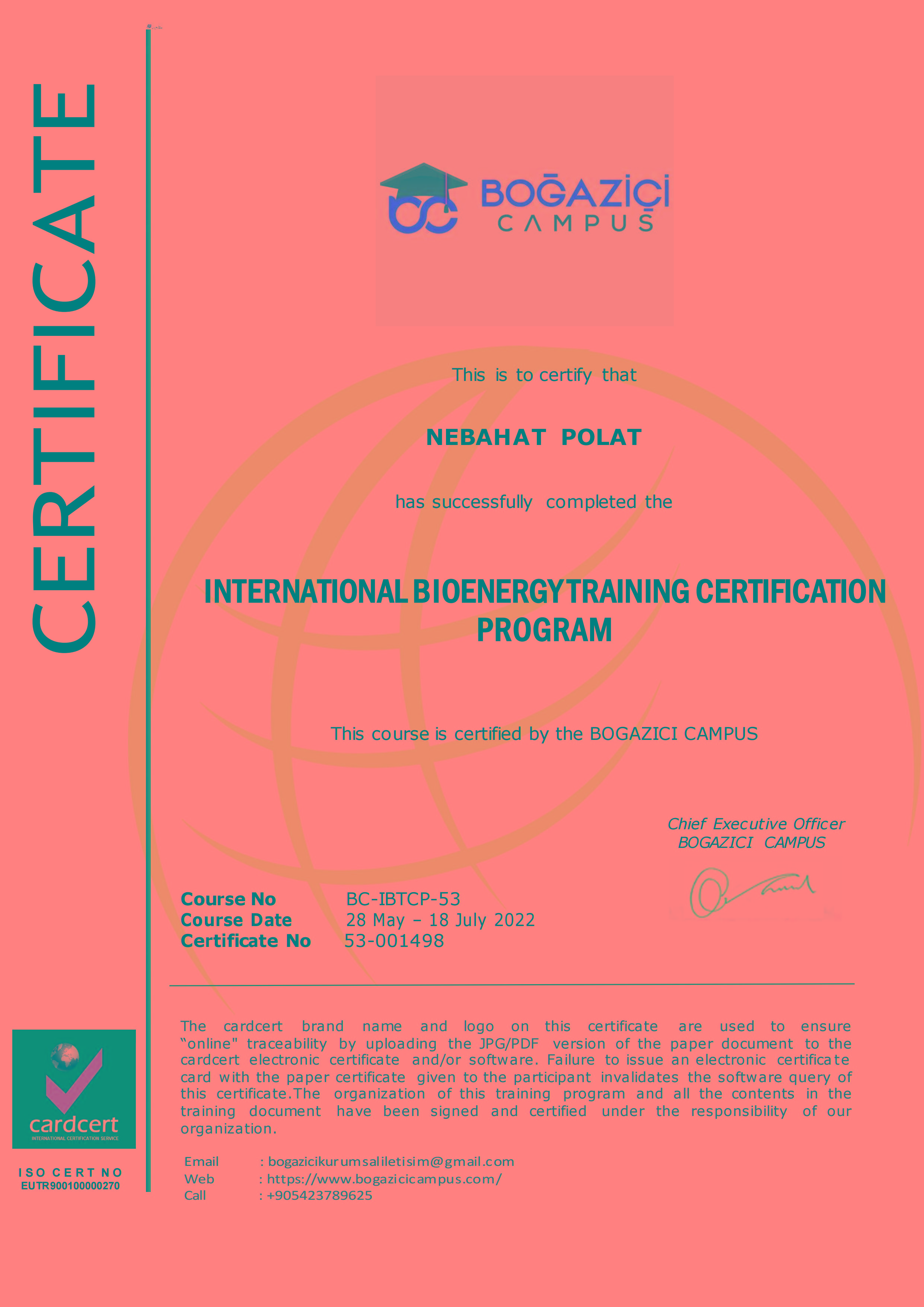 NEBAHAT POLAT - SERTİFİKA BİLGİLERİ